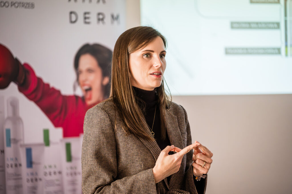 🔹 „Trądzik u dorosłych – mity kontra nauka” – Ewa Stępień z firmy Amara omówiła fakty i mity dotyczące pielęgnacji skóry oraz przedstawiła praktyczne wskazówki dla osób zmagających się z trądzikiem dorosłych.
