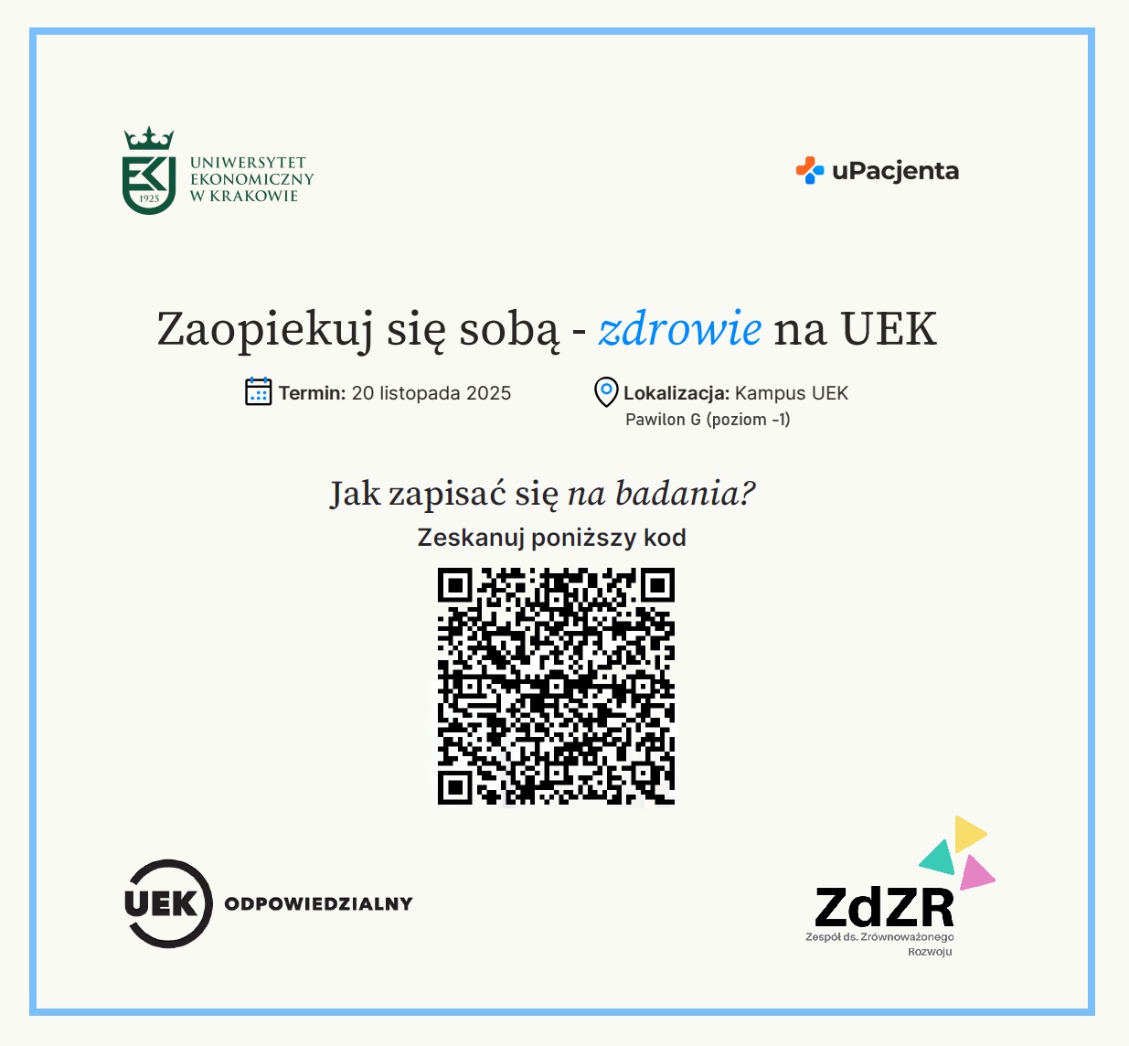 Badania będą realizowane na kampusie UEK we współpracy z firmą uPacjenta – sprawdzonym partnerem medycznym, specjalizującym się w diagnostyce laboratoryjnej.