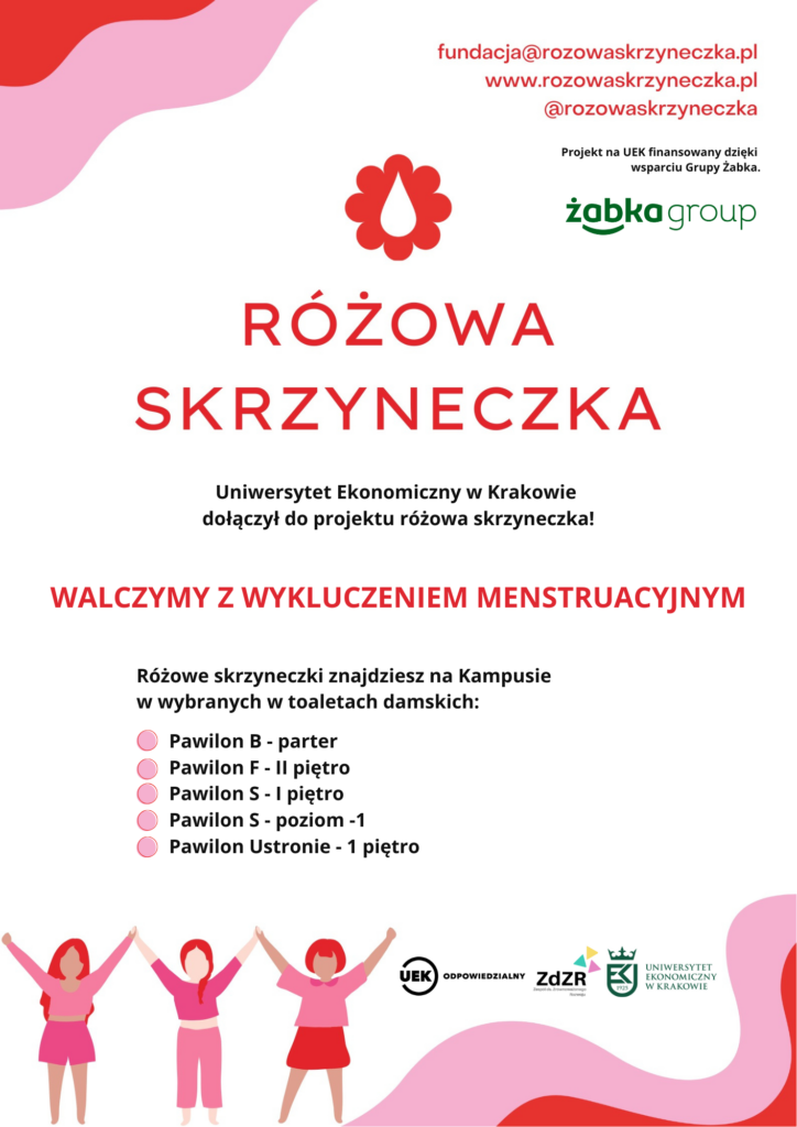 Uniwersytet Ekonomiczny w Krakowie uruchomił na kampusie projekt różowych skrzyneczek – ogólnodostępnych punktów wyposażonych w bezpłatne środki higieniczne dla osób menstruujących. Inicjatywa ma na celu zapewnienie wszystkim użytkowniczkom kampusu poczucia bezpieczeństwa i wsparcia w nagłych sytuacjach.